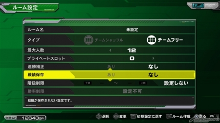 ルーム設定の「戦績保存」の「あり」 / 「なし」が選択可能に