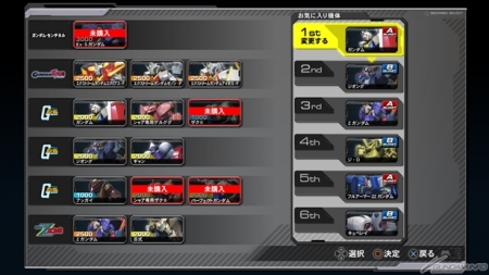 上記モード機体選択画面で「GP」を消費してお試し使用が可能となる。