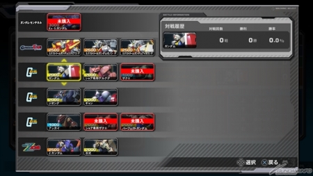 全機体の使用回数、勝利数、勝率を閲覧できるようになる。