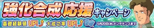 期間中、強化合成時の基礎経験値が1.5倍にアップする。さらに、強化合成時の大成功率もアップ。