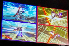 そして、大久保プロデューサーと、同じく開発スタッフの大石勇気氏が登壇し、EXVS.シリーズの新情報が公開された。今夏に行われる「EXVS.MB」の大会「SUMMER BATTLE」の開催決定や、PlayStation3専用ソフト「機動戦士ガンダム EXTREME VS. FULL BOOST」の大型アップデートなど、どれも見逃せない内容だったが、「EXVS.MB」に追加される新機体が発表されると、ファンからひときわ大きな歓声が上がった。