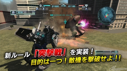 バンダイナムコエンターテインメントより好評配信中のPS3専用オンラインバトルアクションゲーム「機動戦士ガンダム バトルオペレーション」では、本日10月15日(木)、新ゲームルール「突撃戦」が実装された。