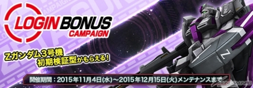 ■ 「Ζガンダム3号機 初期検証型」がもらえる「ログインボーナスキャンペーン」!