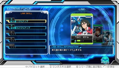 ▲修得するリンクスキルは機体の耐久値やリロード速度のアップ、ブーストゲージ量の増加など様々。パイロットによってスキルや成長タイプも異なる。