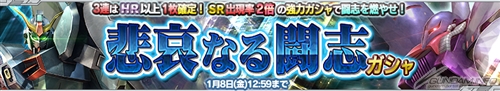 「SR ガンダム試作3号機ステイメン」、「SR アストレイレッドフレーム改」、「SR セイバーガンダム」、「SR コウ・ウラキ」、「SR アスラン・ザラ」などの新規カードが10枚追加されたガシャ。特典として、SRの出現率が2倍になっており、3連ガシャは3枚目がHR以上確定となっている。
