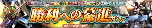 「SR ガンダム試作2号機(MLRS仕様)」、「SR フォースインパルスガンダム」、「SR アイナ・サハリン」などの新規カード6枚が追加されたガシャ。SRの出現率が2倍になっており、3連ガシャは3枚目がHR以上確定となっている。