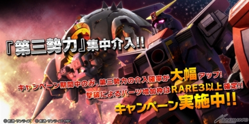 キャンペーンでは、期間中のみ第三勢力「アプサラスII」と「サイコ・ガンダム」の介入確率が大幅にアップする。