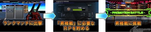 「ランクマッチ」とは期間限定で行われるゲームタイプで、期間中にランクマッチへ出撃すると、戦闘結果に応じたランクポイント(RP)を獲得できる。ランクポイントは、貯めることで「ディヴィジョン」と「ランク」を上げることができ、期間終了後の「ランク」によって、次回開催予定の「ランクマッチSeason4」までのログインボーナスの内容が豪華になる。また、ランクマッチ中は獲得したRPによって、機体や強化パーツなどの褒賞も手に入れることができる。