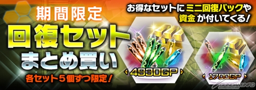 キャンペーン期間中は、GPを購入すると、おまけで「回復パック」や「B&Tチケット」などのアイテムがついてくる。開催予定期間は5月8日(日)23:59まで。