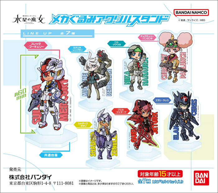 Gashapon Mecha Gurumi acrylique stands deMobile suit Gundam la sorcière de mercuresera en vente à Gashapon machines à travers le Japon en avril.Ils coûteront 300 JPY (TTC) par pièce.