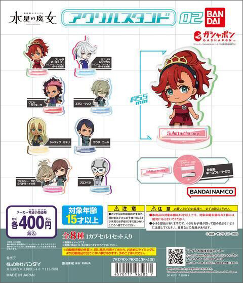 Le Gashapon articles mobile suit Gundam la sorcière de mercure acrylique stands 02 sera en vente à Gashapon machines autour du Japon à partir de la 4ème semaine de mars.Chacun d’eux coûte 400 JPY (taxes incluses).