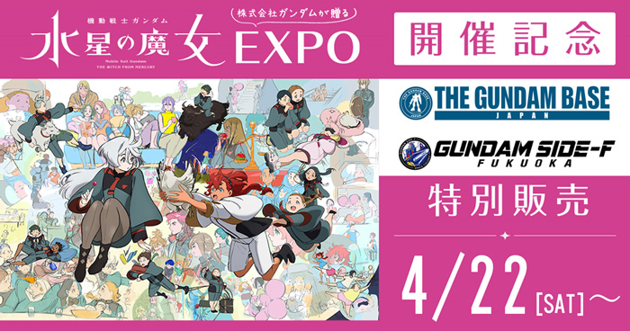 Une vente de marchandises spéciales pour célébrer le mobile suit Gundam THE WITCH FROM MERCURY EXPO se tiendra à partir du samedi 22 avril, à chacune des installations de la BASE de GUNDAM GUNPLA et GUNDAM SIDE-F à Fukuoka.