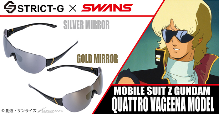 Deux modèles des STRICT-G SWANS Sunglasses Quattro Vageena Model V2, une collaboration entre STRICT-G, la boutique de vêtements qui présente l’univers Gundam, et la marque de lunettes de soleil de sport SWANS, sortiront demain, samedi 8 juillet.