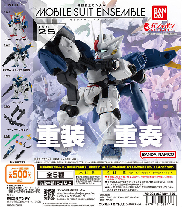 Le 25ème opus de la série MOBILE SUIT ENSEMBLE, une marque qui se concentre sur le thème des silhouettes changeantes en raison de l’armement, sera mis en vente dans les machines Gashapon dans tout le pays à partir de la troisième semaine de septembre pour 500 JPY (taxes incluses) chacune.