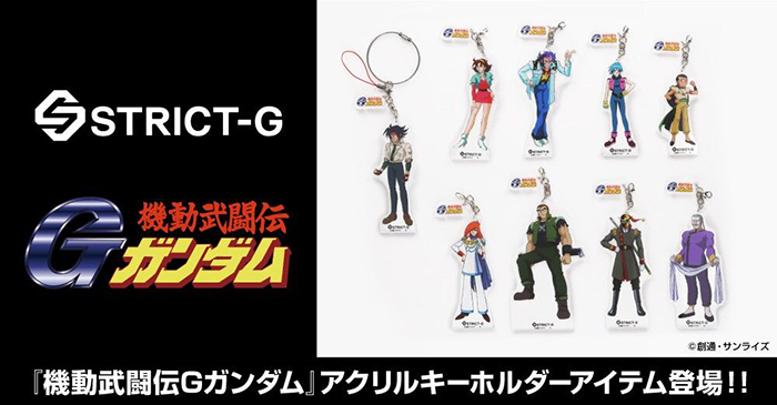 Les précommandes pour 9 types de porte-clés acryliques STRICT-G Mobile Fighter G Gundam qui seront vendus dans chaque magasin STRICT-G à partir du samedi 25 mai, ont enfin commencé. N’oubliez pas de visiter les magasins et de les vérifier. Les porte-clés coûtent 1 430 JPY (TTC) chacun.