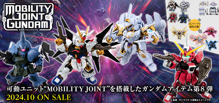 MOBILITY JOINT GUNDAM VOL. 8, la huitième série de figurines mobiles MOBILITY JOINT, sera mise en vente en octobre 2024. Ils seront chacun disponibles au prix de 715 JPY (taxes incluses).