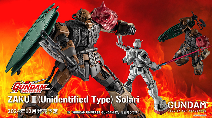 Après la sortie de l' GUNDAM UNIVERSE GUNDAM EX prévue en novembre, les détails emblématiques de la ZAKU II (Type non identifié) ont été fidèlement reproduits. Il peut être affiché dans des poses vues tout au long de la série, et il est livré avec des armes telles qu’un Hawk thermique, Zaku mitrailleuse et Shield qui peuvent être utilisés pour recréer des scènes.