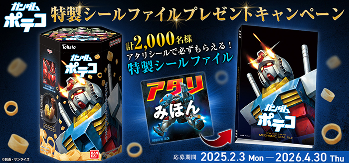 De plus, une campagne de fichiers d’autocollants de loterie Gundam Poteco commence le lundi 3 février. Il s’agit d’une campagne où vous pouvez recevoir un fichier d’autocollants spécial si vous gagnez un autocollant de loterie. Le fichier spécial d’autocollants n’est disponible que dans le cadre de cette campagne et peut stocker 48 autocollants dans un seul livre, comme une encyclopédie d’autocollants. Ne manquez pas cette occasion de le collectionner.