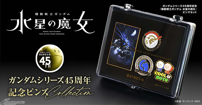 Le set de pins du 45e anniversaire de STRICT-G Mobile Suit Gundam THE WITCH FROM MERCURY Gundam Series sera disponible à la vente le 22 mars !
