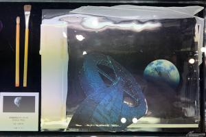 De plus, le stand CoMix Wave Film présentait des illustrations d’arrière-plan utilisées dansMobile Suit Gundam W : Valse sans finpar le studio d'art Studio Bihou, ainsi que des cels d'animation deMobile Suit Gundam W.