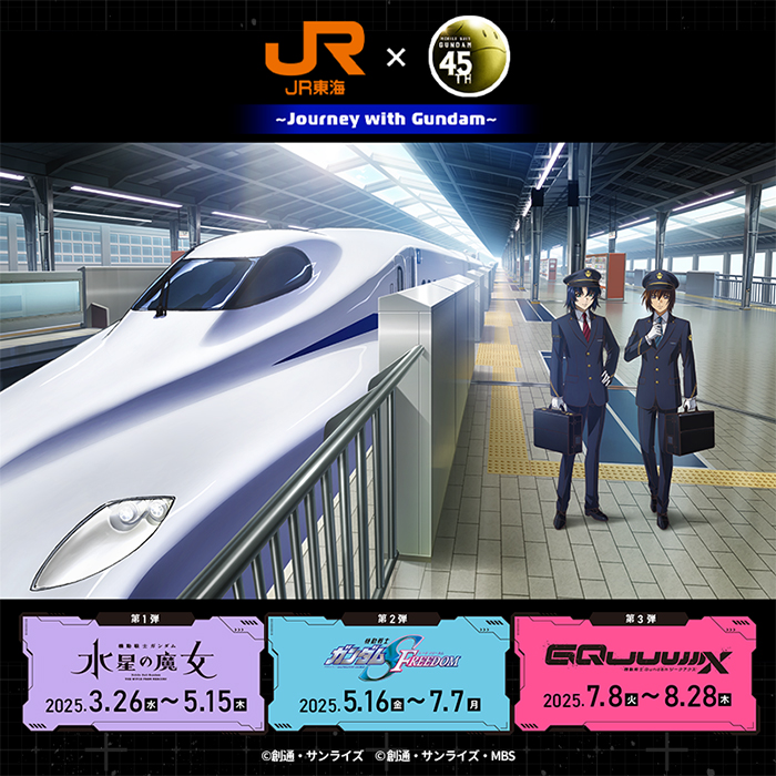 La série Gundam fête ses 45 ans et collabore désormais avec le Tokaido Shinkansen, qui a commencé ses services il y a 60 ans. Au cours de l’événement, de nombreux événements Gundam auront lieu autour de la ville d’Osaka en 2025, et vous pourrez profiter d’illustrations originales liées au Tokaido Shinkansen, d’émissions de radio spéciales qui ne peuvent être entendues que sur le Tokaido Shinkansen, de la sortie d’articles collaboratifs et d’autres expériences qui ne peuvent être vécues que tout au long de ce parcours.