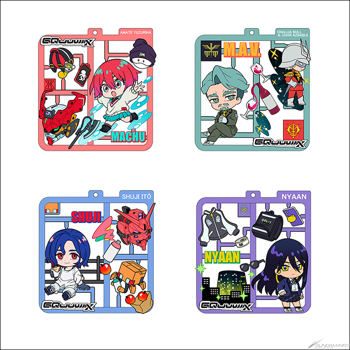 Le design est parsemé de motifs associés à chaque personnage, et le cadre est utilisé pour créer un effet tridimensionnel attrayant, une expression aérienne et une sensation de profondeur. Alors que la figurine est dodue et semi-tridimensionnelle, le dos est plat, de sorte qu’elle peut être accrochée à un mur ou attachée à un sac avec la chaîne à billes incluse. La gamme comprend quatre types : Machu, Nyaan, Shuji et Challia Bull.