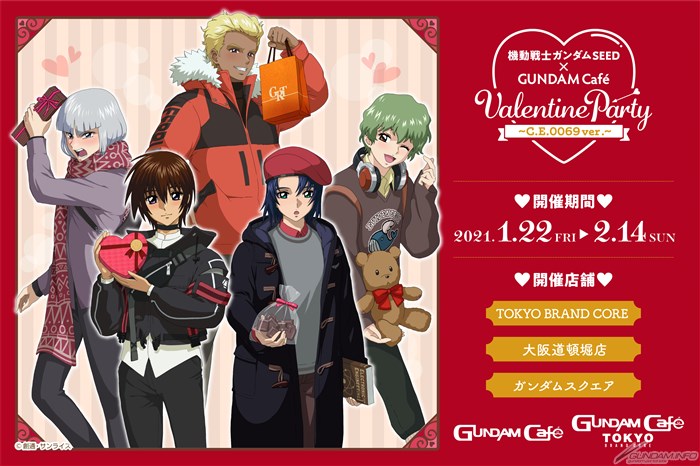 Ce mois-ci inclut de nouveaux événements tels que leMobile Suit SEED GundamGUNDAM Café Saint-Valentin ~ C. E. 0069ver ~ dîner et la collecte-GMobile Suit SEED GundamSaint-Valentin & blanc à la fête ~ C. E. 0069ver ~ Limited-temps.
