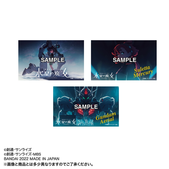 Autocollant avec des milieux mousseux qui utilise des illustrations deMobile suit Gundam la sorcière de mercure.Deux des trois types ont des noms estampillés de feuille des caractères et des costumes mobiles.