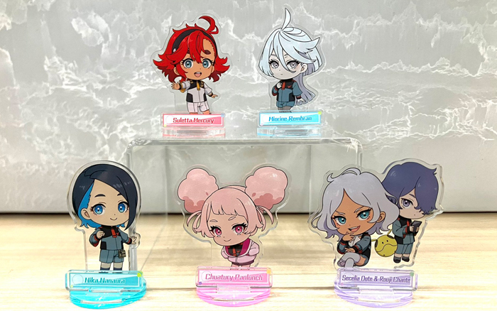 Ces articles sont des stands acryliques avec des illustrations de laMobile suit Gundam la sorcière de mercureMascottes en caoutchouc capsule qui a été en vente dans la 5ème semaine d’octobre.