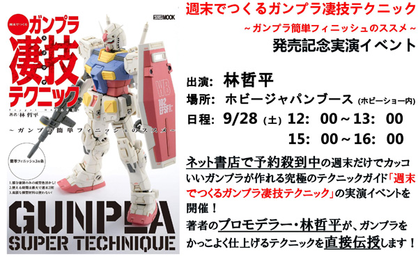 aussi, le 28 septembre, 2019 (Sam) à partir de 12h00 et à nouveau à partir de 15h00, Hayashi Teppei, auteur de "Grandes techniques pour construire Gunpla au cours d'un week-end" tiendra également un Événement de démonstration.
