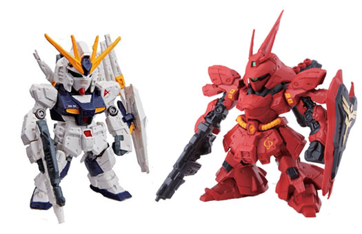 The FW Gundam Converge series, noted for its high-quality miniature 60mm figures, is releasing a set of Char's final MS, the Sazabi, and its fated rival the ν Gundam. Preorders are now being accepted on Premium Bandai's Candy Toy online shop. Orders will ship in August at a price of 1,155 yen.