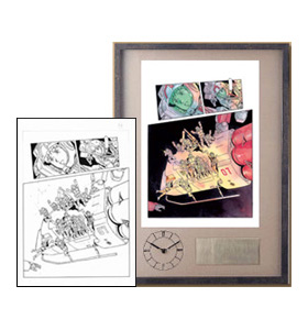 The repro art includes both line art and completed pages, of which one can be chosen for display in the clock at any time. Don’t miss this chance to see the fine detail of Yoshikazu Yasuhiko’s art up close!