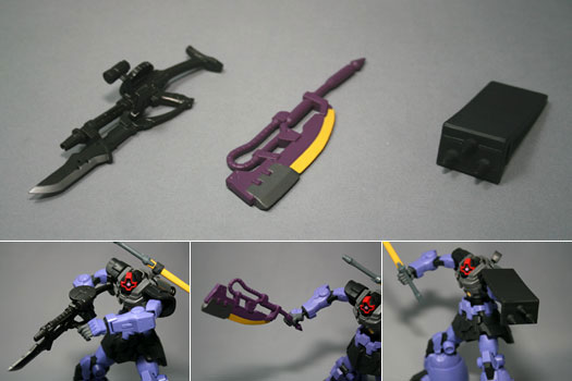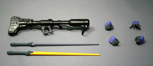Each figure comes with a giant bazooka and heat saber. Included are not only manipulators with a firm grip, but also open-grasp manipulators for brandishing the heat saber!