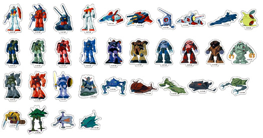 Mobile Suit Gundam’s mobile suits and mobile armors appear in their original art on this sticker set! Stickers are glued lightly for easy removal and resticking. Each package contains 33 stickers.