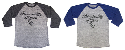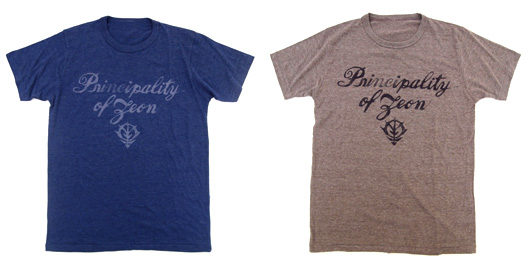 A faded Principality of Zeon print draws out these shirts’ vintage feel!