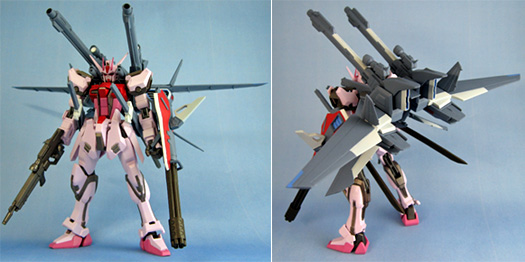 The Strike Rouge, a variation on the Robot Damashii Side MS Aile Strike Gundam, combines the best of the Aile, Sword, and Launcher Striker Packs in its I.W.S.P.!