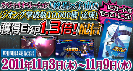 The special operation 'Shuen no Uchu' has been successfully completed! Receive 30% bonus Exp, now until November 9th!