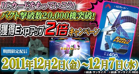 (NOW TRANSLATING) バクト撃破数20,000機突破!「獲得Expアップ2倍キャンペーン」12月7日まで実施中!「ガンダムトライエイジ」