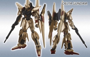 Leading the lineup is the golden Delta Gundam from the PS3 game Mobile Suit Gundam UC!