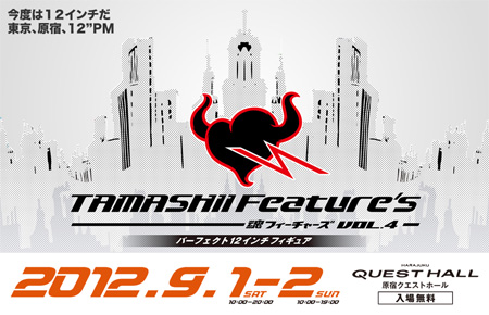 The 'Tamashii Feature's Vol. 4: Perfect 12-inch Figure Act 2' event, showcasing products from Bandai's hot Tamashii lines, will be held September 1st-2nd at Harajuku Quest Hall in Tokyo. Admission is free.