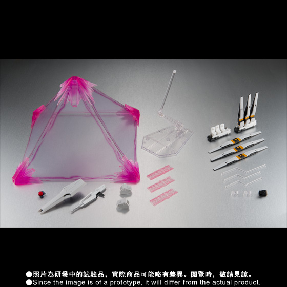 Product Description | Additional Fin Funnel ×6 Funnel Rack(1 pc each for Left and Right side) Exchange shoulder armor Exchange rifle, shield Exchange Funnel joint parts Beam effect Beam PET sheet Tamashii STAGE Additional arm joint ×3 Exchange right hand (holding the cockpit of Sazabi) |