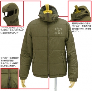The Char Custom and Zaku blousons are warm yet lightweight military-style jackets with cotton filling.