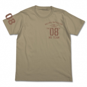 The 08th MS Team T-shirt, based on the 08th MS Team of the Kojima Batallion that Shiro and his team were assigned to, features the 08 marking printed on both sleeves.
