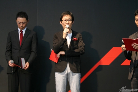 まずは、司会として古川愛李さんが初披露となる、ジオニックトヨタ特別広報部員の制服を纏って登場。続いて、トヨタマーケティングジャパンの柳澤俊介氏より、昨年のキャラホビ2012での「シャア専用オーリスCONCEPT」の公開から1年、ついに完成した「シャア専用オーリス」市販モデルへの意気込みが語られる。