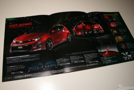 ついに市販モデルのデザイン、価格が公開された「シャア専用オーリス」。その公開にあわせ、全国のネッツ店にて、「シャア専用オーリス特別仕様カタログ」の配布が行われている。