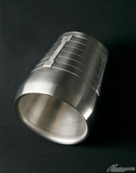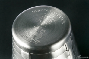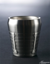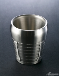 ▲外観だけでなく内部にもバーニアのディテールが盛り込まれたデザイン。底面には、新潟県燕市で生産された優れたデザイン・品質の商品に対して燕商工会議所が審査・認証し、許可を得た物だけが使用を許される「燕のロゴマーク」と「Made in TSUBAME」の文字が刻まれている。 容量180ml / 外径79mm(内径63mm)×高さ86mm