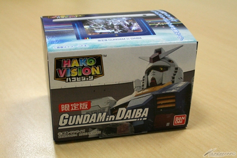 バンダイが独自に開発した「ハコビジョン技術」で驚きの映像体験を手のひらサイズで実現した食玩「ハコビジョン」と、「TOKYOガンダムプロジェクト2014 ガンダムプロジェクションマッピング“Industrial Revolution”‐to the future‐」がコラボレーションした限定アイテム『ハコビジョン 限定版 GUNDAM in DAIBA』。
