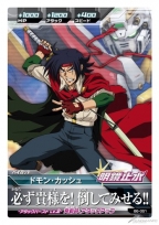 レアカード、コモンカードは『機動武闘伝Gガンダム』や『ガンダムビルドファイターズ』に登場する機体、パイロットを中心とした多彩なラインナップとなっている。