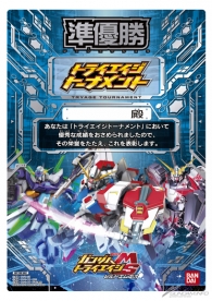 「5月トライエイジトーナメント大会」では、最大16人によるトーナメント大会が実施され、参加者にはプロモーションカード「BPR-043 ユニコーンガンダム(デストロイモード)」や「スペシャルカードパック8」がプレゼントされる。さらに、見事大会に優勝すると、トーナメントオリジナルカラーの「ブルーディスティニー1号機 プラチナカラー」が開発可能となる。