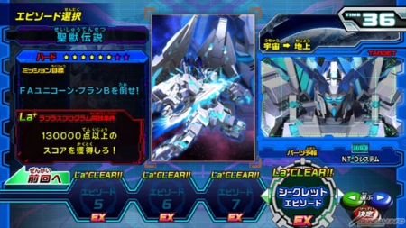 すべての条件を達成することで、シークレットミッション「聖獣伝説」が出現し、新たなユニコーン「FAユニコーンガンダム・プランB」がプレイヤーに立ちはだかる。
